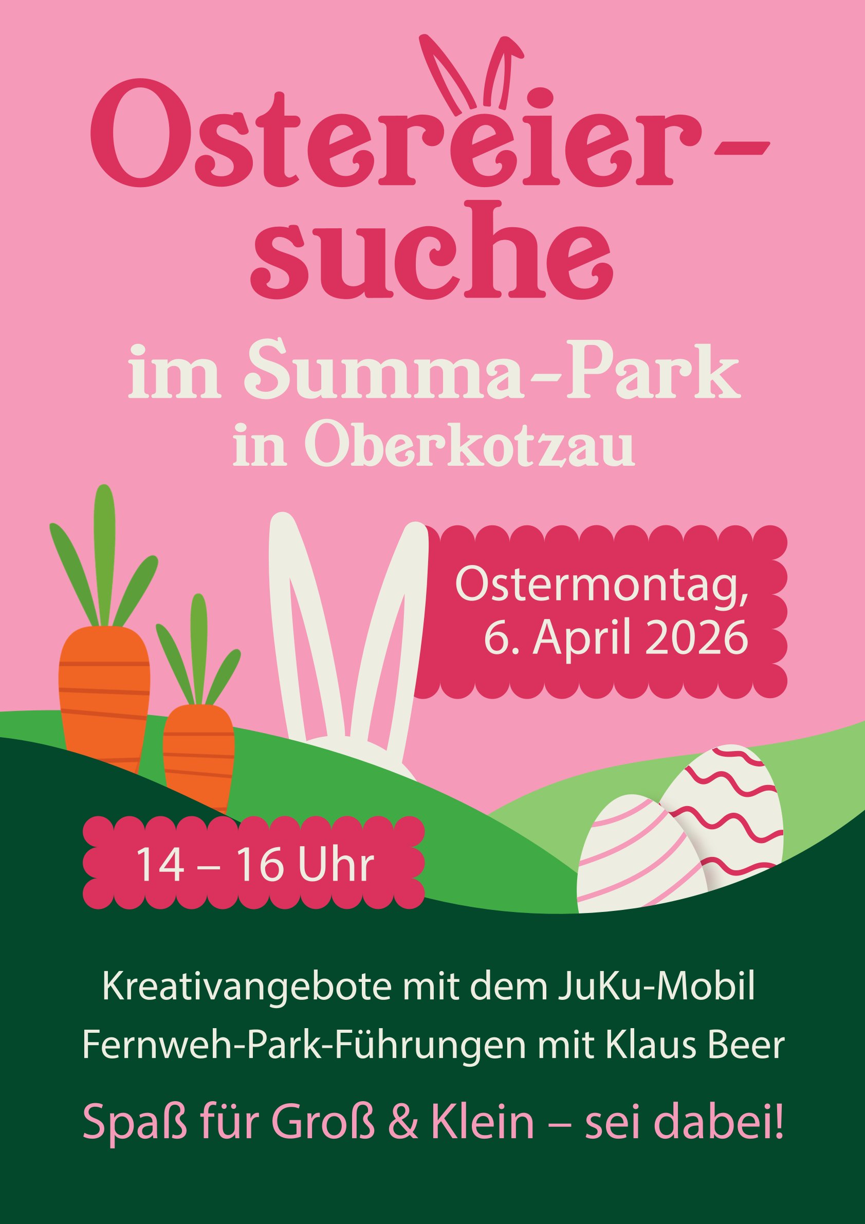 Im Laufe des Nachmittags wurden rund 500 bunt gefärbte Ostereier im gesamten Gelände versteckt, die von vielen Kindern mit großer Begeisterung gesucht und gefunden wurden. Überall im Summa-Park und im angrenzenden Fernweh-Park herrschte reges Treiben.