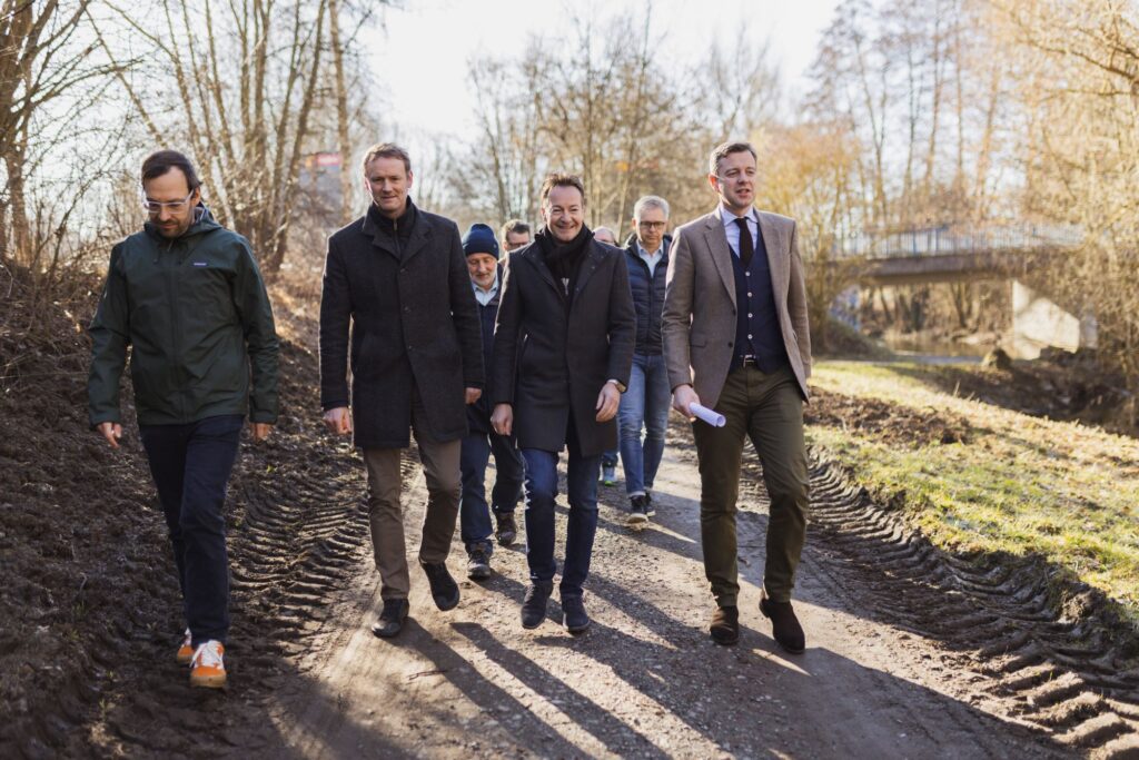 Die Trasse des Saaleradwegs zwischen Oberkotzau und Döhlau wird nach Jahren der Planung und Bemühen um eine Finanzierung im Rahmen des Flüsseradweg-Projektes auf rund 2.100 Metern ausgebaut und asphaltiert und damit die Befahrbarkeit deutlich verbessert. Ähnlich wie beim hochfrequentierten Perlenradweg wird somit auch die Begehbarkeit für ältere oder gehbehinderte Menschen auch mit Hilfsmitteln problemlos ermöglicht. Für die Baumaßnahme gaben Landrat Dr. Oliver Bär, Oberkotzaus Bürgermeister Stefan Breuer und Döhlaus Bürgermeister Marc Ultsch nun den Startschuss. Möglich wird dies durch den finanziellen Einsatz des Marktes Oberkotzau, der Gemeinde Döhlau und durch die finanzielle Unterstützung von Bund und Land. Die Baumaßnahme soll bis Ende Mai abgeschlossen werden. Die Eigenmittel des Marktes Oberkotzau betragen rund 106.000 €.