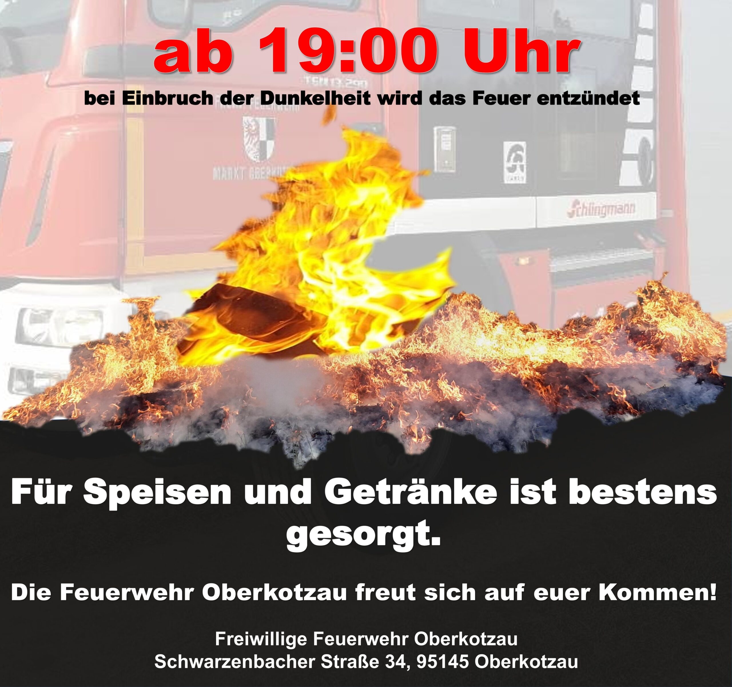 Hexenfeuer Hauptveranstaltung Datum 30. April 2026 Uhrzeit 19:00 Feuerwehrgerätehaus Oberkotzau Schwarzenbacher Str. 34