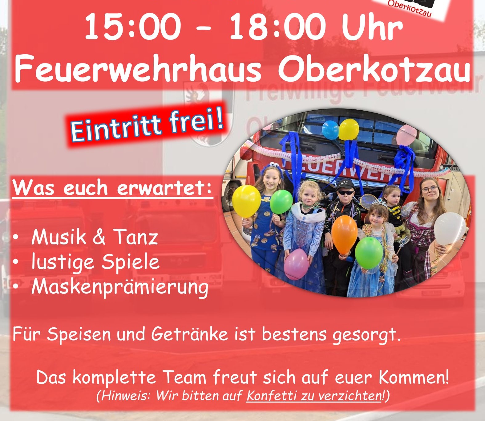 Kinderfasching Hauptveranstaltung Datum 17. Februar 2026 Uhrzeit 14:00 - 18:00 Feuerwehrgerätehaus Oberkotzau Schwarzenbacher Str. 34